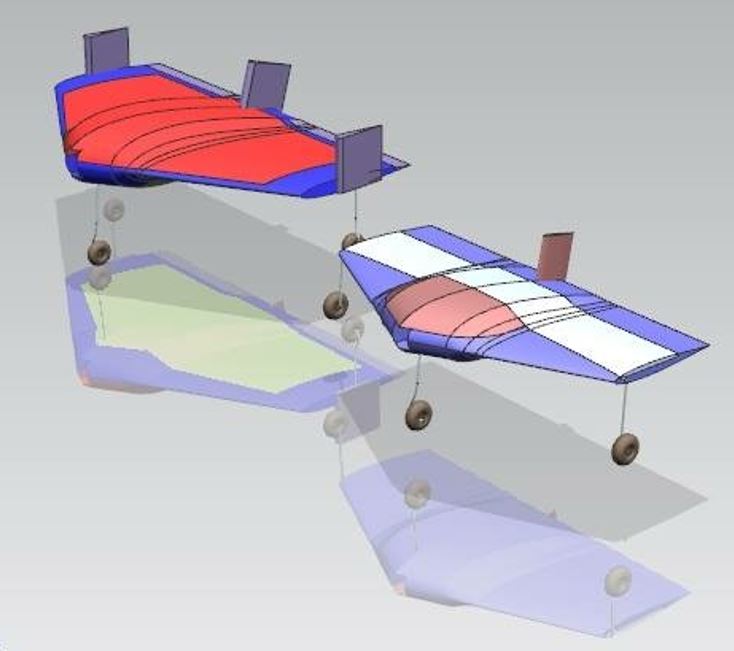 Blended wing body using carbon fiber composite structure. Wings self fold and lock into place. Successful flight tests but difficulty taking off at competition in Tucson, AZ due to high temperatures and elevation.