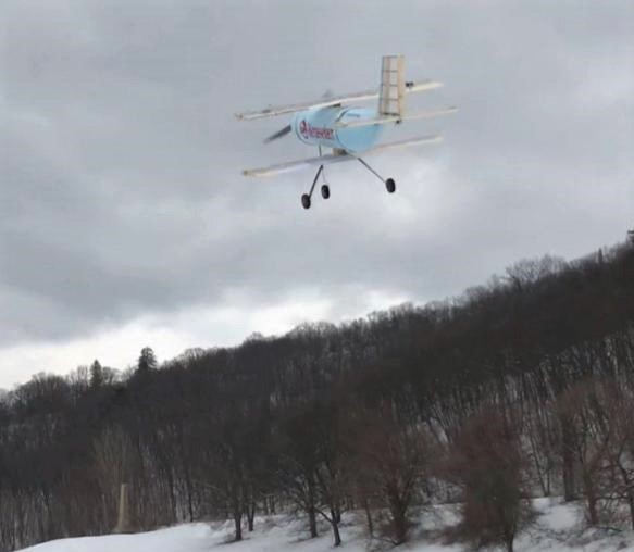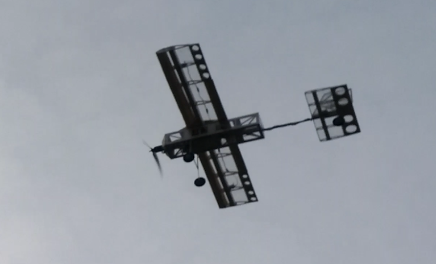 Point system favored aircraft with short wingspan so biplane configuration was chosen. CNC foam halves sandwiching balsa wood structure for easy access to passengers & electronics. Propolusions lead engineer responsible for motor, propeller, battery packs, receiver, and electronics. Completed first mission and ground mission at competition in Wichita, KS.