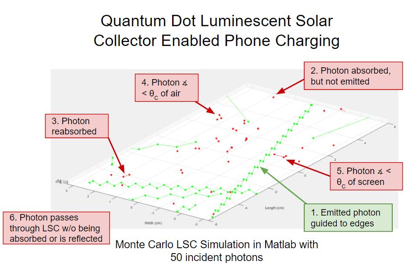 Quantum dot enabled phone charger concept with an overall efficiency of greater than 3%. Uses transparent waveguide luminescent solar collector as a screen protector to internally reflect photons to outer edges.